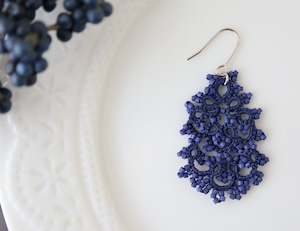 『タティングレースのフレンチクールピアス(イヤリング)~オリエンタルブルー~』