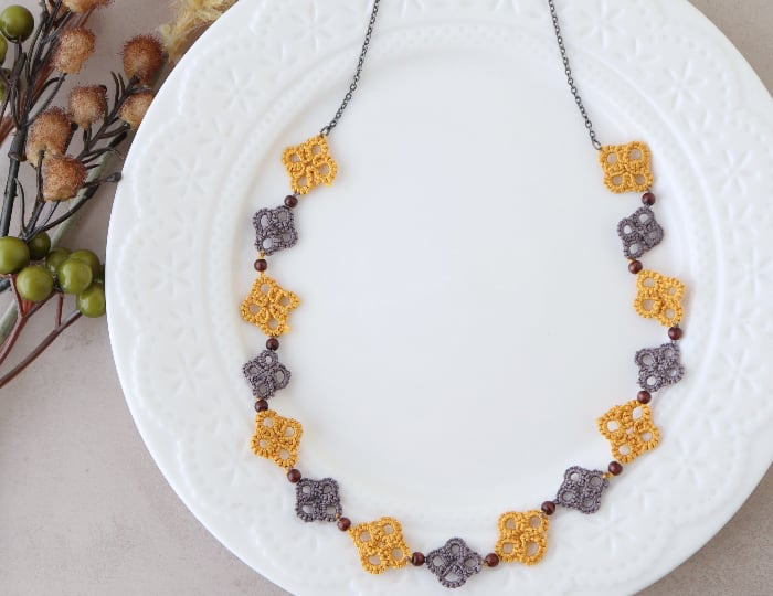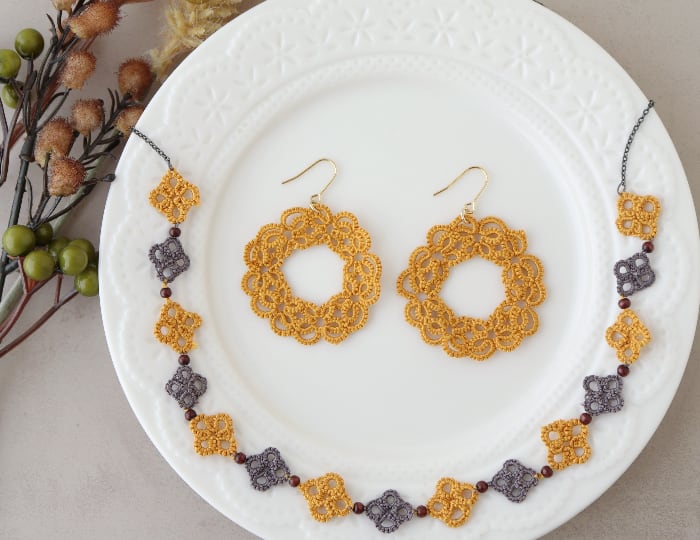 『秋限定福袋①☆タティングレースのネックレス&ピアス(イヤリング)のセット』