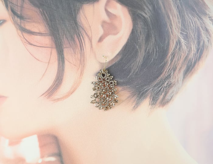 『タティングレースのフレンチクールピアス(イヤリング)~ゴールド~』