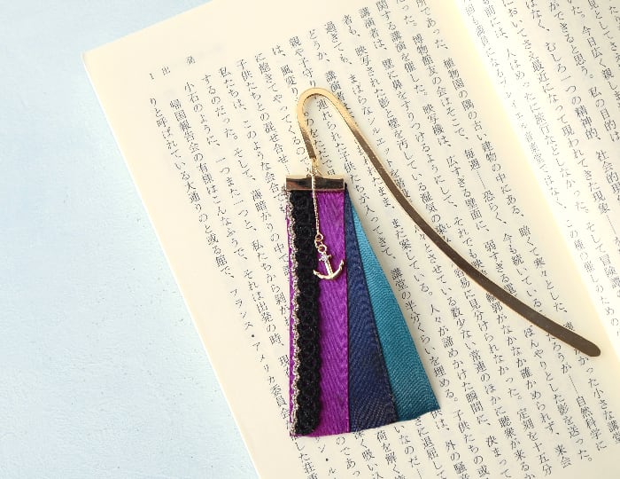 アクセントに黒いレースで編んだモチーフやイカリ型のチャームをプラスし