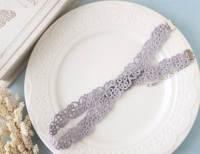 『ニュアンスカラーのタティングチョーカー*ライトグレー*』