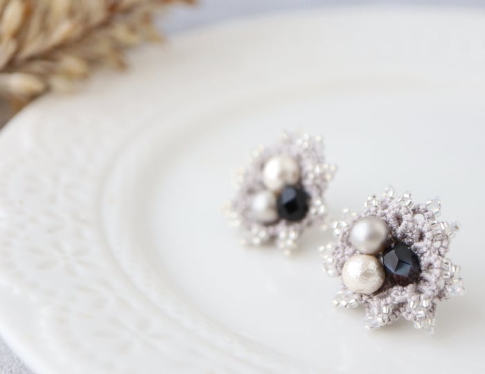 『タティングレースの冬色ビジューピアス *ダークカラー*』