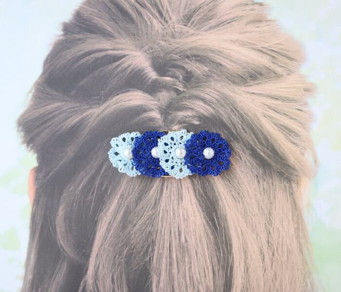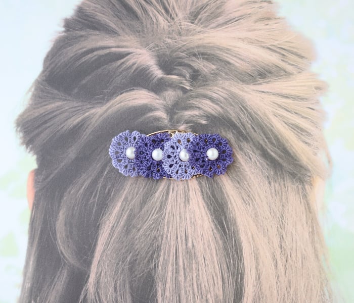 『タティングレースの2色のお花のポニーフック』