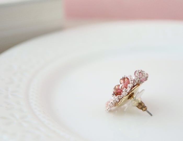 ピンク系のビーズの優しい色合いが