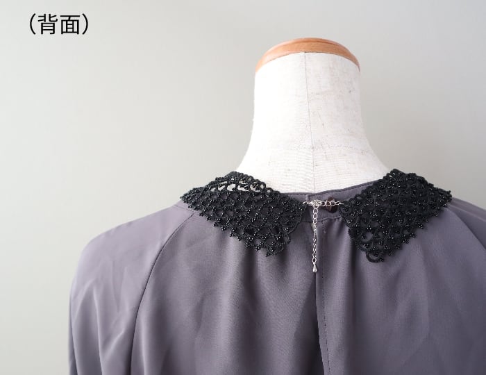 『タティングレースのビーズ付け襟ネックレス*ブラック*』